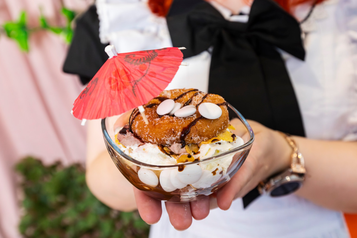 Kahvilassa voi tilaa esimerkiksi Meido-donitsiannoksen.