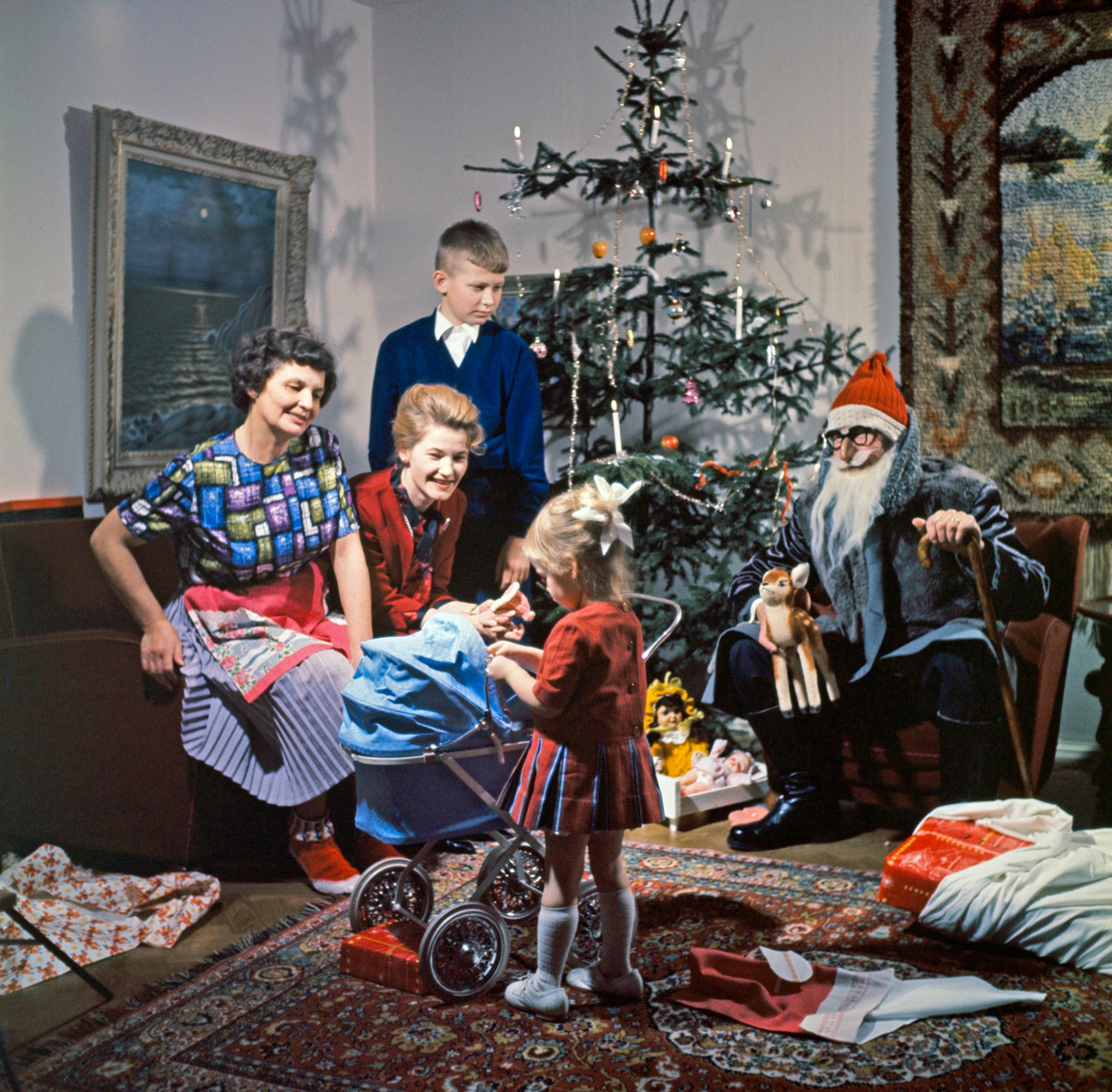 Aiemmin joulupäivä oli joulun ajan päivistä tärkein. Nykyään paino on siirtynyt jouluaattoon. Jouluaaton viettoa Helsingin Tammisalossa 1960-luvulla. Kuva: Juha Jernvall / Helsingin kaupunginmuseo