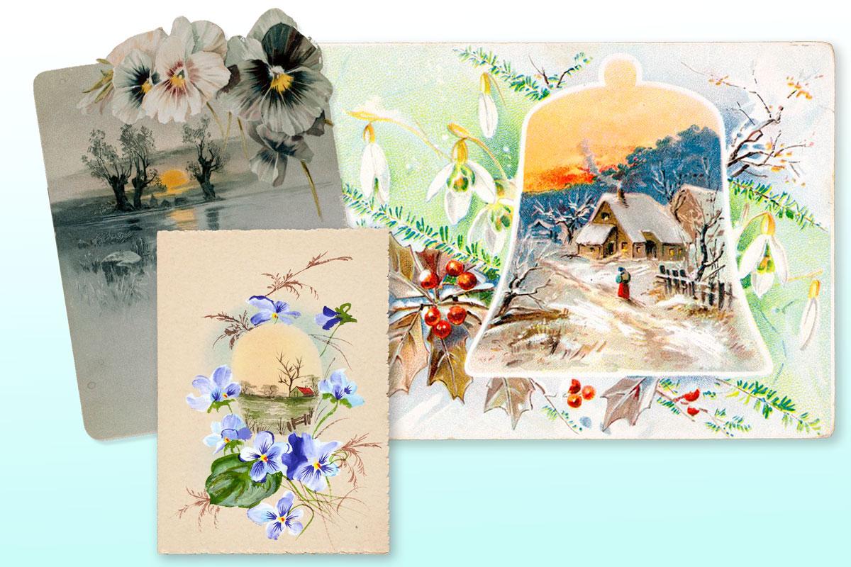 Ensimmäisiä joulukortteja koristi kesäinen maisema