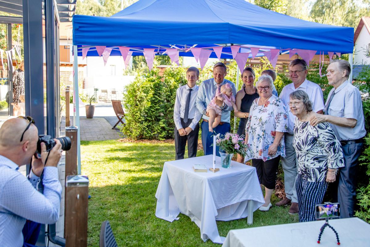 Niinpä kauniina elokuisena lauantaina Ruusujen perheen pihalle kokoontui sukulaisia ja ystäviä jatkamaan siitä, mikä koronakeväänä jäi kesken. Kodin siunaamisen yhteydessä vietettiin huhtikuussa kastetun Wanessan kastejuhlaa kakkukahveineen.