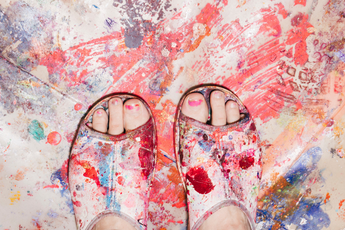 Maaria Oikarisen viime kesän kohokohta oli, kun hän järjesti nuorille maalauspajan työhuoneellaan. Helsingin kaupunki myönsi pienen summan materiaalihankintoihin, mutta muuten kyseessä oli vapaaehtoistyö. ”Haen rahoitusta, jotta voisin pitää pajoja jatkossakin”, hän sanoo.