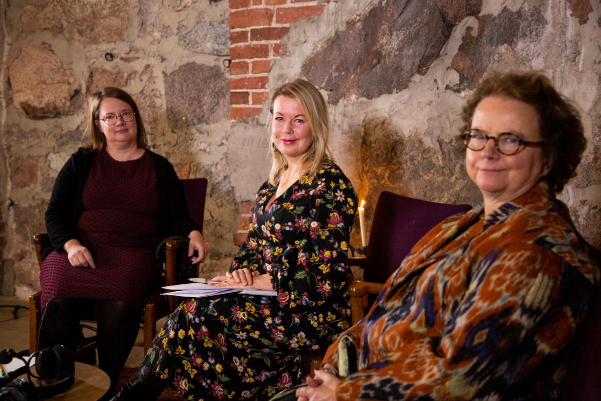 Toisen Keskusteluja kryptassa -tilaisuuden aiheena oli yhteiskuntaluokka. Kirjailija, dokumentaristi Elina Hirvonen pohti professori Laura Kolben ja kirjoittavaksi eläkeläiseksi itseään kutsuvan Auli Viitalan kanssa sitä, millaisia luokkaretkiä Suomessa tehdään ja minkälaisia ristiriitoja hyvinvointivaltion kulisseista löytyy.