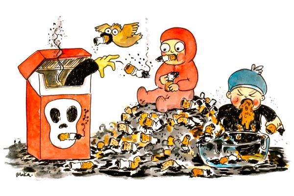 Kerätessämme Ahosen kanssa roskia huomaa, että tupakantumpit ovat selkeästi niistä yleisimpiä. Tumppi eli tupakan filtteriosa valmistetaan selluloosa-asetaattista. Se ei maadu kunnolla, vaan hajoaa ajan kuluessa mikromuoveiksi. Tumpit sisältävät ympäristölle haitallisia kemikaaleja, ja on vaarana, että eläimet tai lapset syövät niitä.