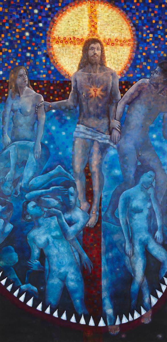 Kuolemaa väkevämpi. Öljyvärimaalaus, 245 cm x 145 cm.