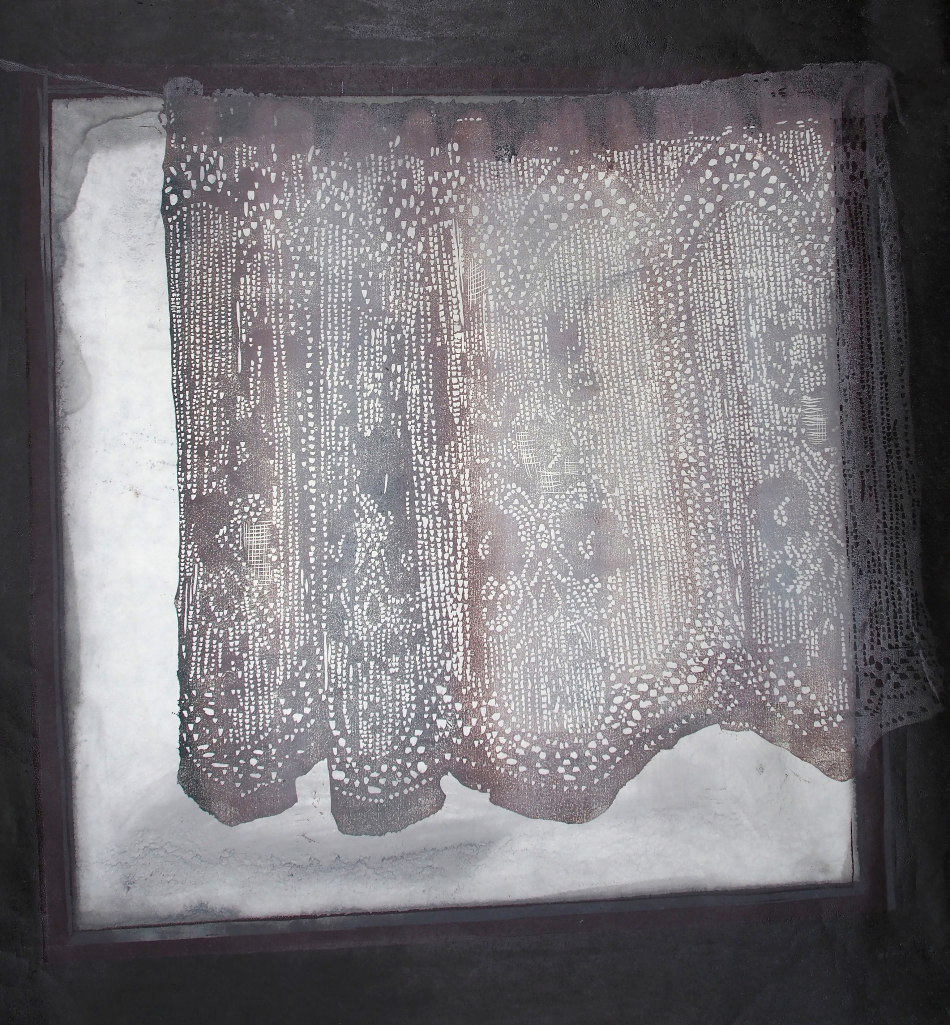 Anniina Vainionpää: Harmaa huone III (150 x 97 puupiirros ja monotypia, 2017)