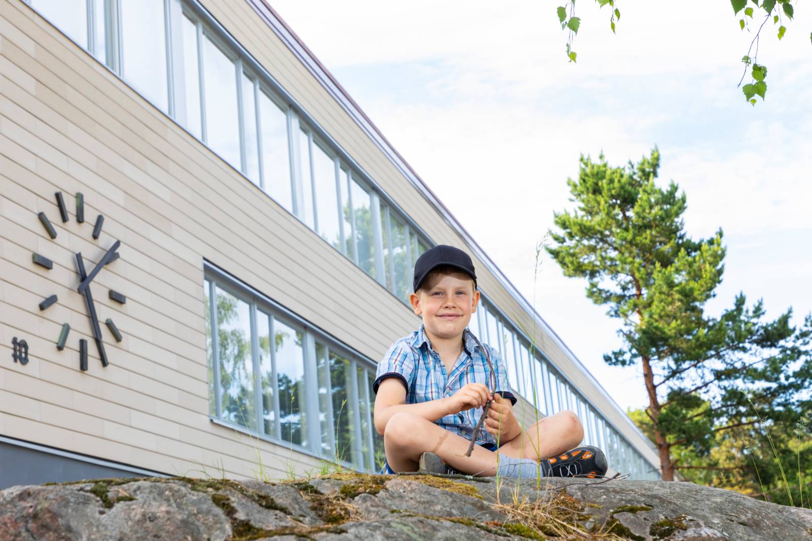 Vantaalla koulun aloittava Eetu Rahomäki, 7, kävi eskarin Päiväkoti Leijonamielessä.
