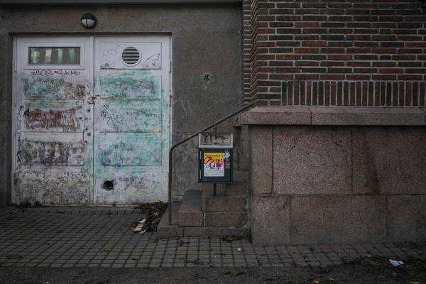 Diakonissalaitoksen Katutason työntekijät tekevät myös jalkautuvaa työtä Myyrmäessä. Viestinnän asiantuntija Laura Luoto ja sairaanhoitaja Vera Korpisalo tarkistivat, onko parkkihallin portaikossa ketään. Tämän oven takaa portaikosta löytyi yksi henkilö.