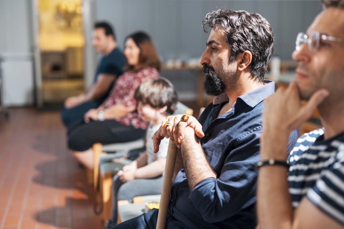 Golden Artin jäsenet juttelevat pienissä ryhmissä. Ehkä he vaihtavat kuulumisia. Se on vain arvaus, sillä he puhuvat persiaa. Tältä siis tuntuu, kun ei ymmärrä sanaakaan ympärillä kuuluvasta puheesta.