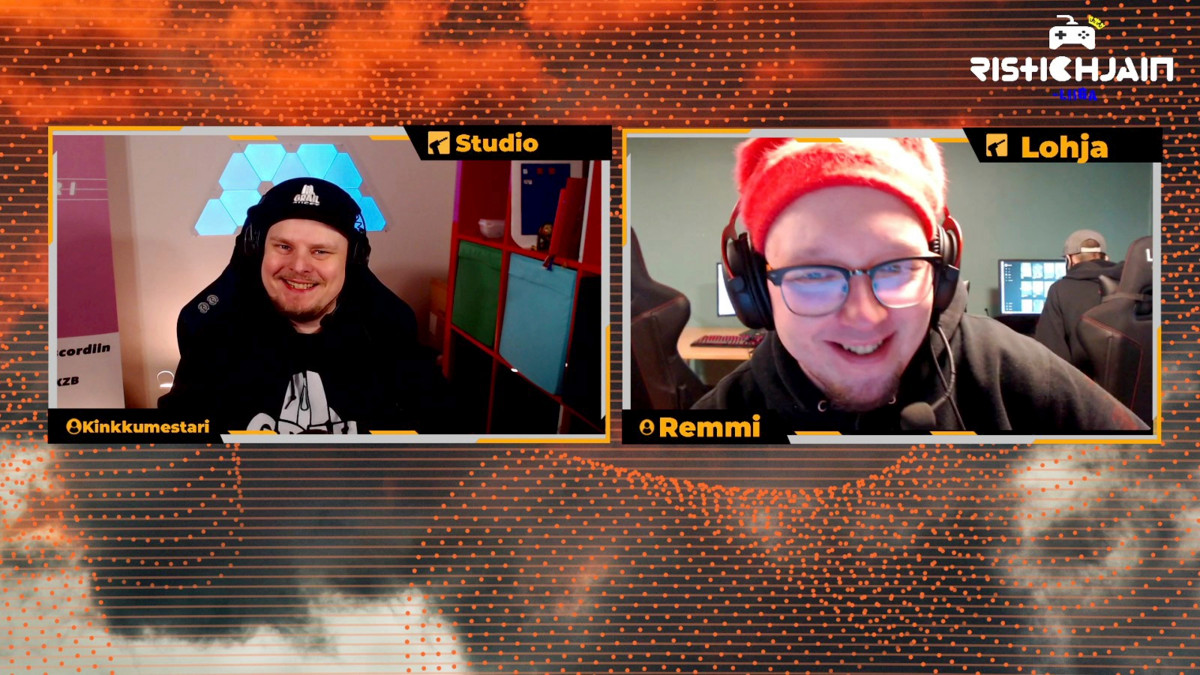 Toni Majola (vas.) selostaa yhdessä Jouni Silventoisen kanssa Counter-Strike: Global Offensive -peliä Ristiohjain-pelikanavalla. Kuva: Kuvakaappaus Ristiohjain-pelikanavalta.