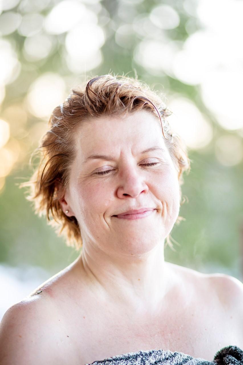 – Tuntuu ihanalta päästä lauteille. Saunomiseen liittyy helpotuksen huokaus ja syvä rauha.