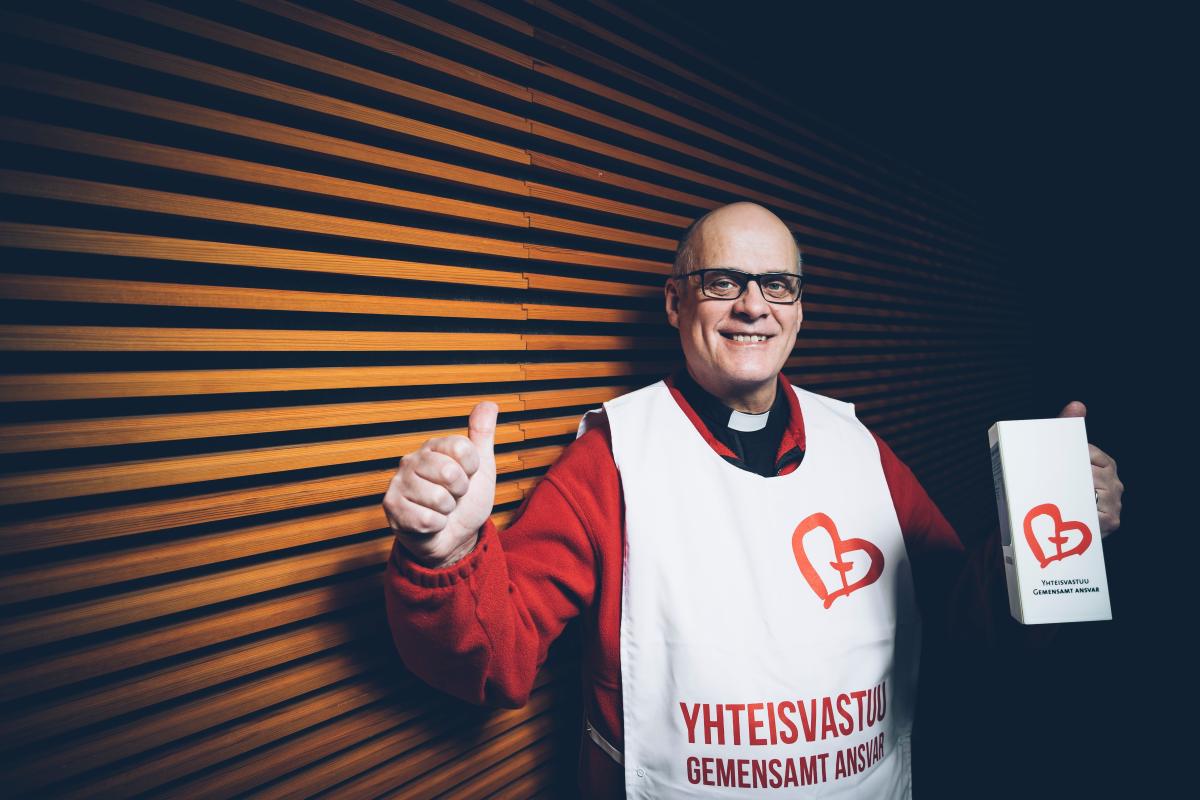 – Suurin osa Yhteisvastuukeräyksen tuotosta kertyy meillä tapahtumista, kertoo Roihuvuoren seurakunnan pappi Kari Laaksonen. Myös lipaskeräystä tehdään, ja moni lahjoittaa suoraan netissä.