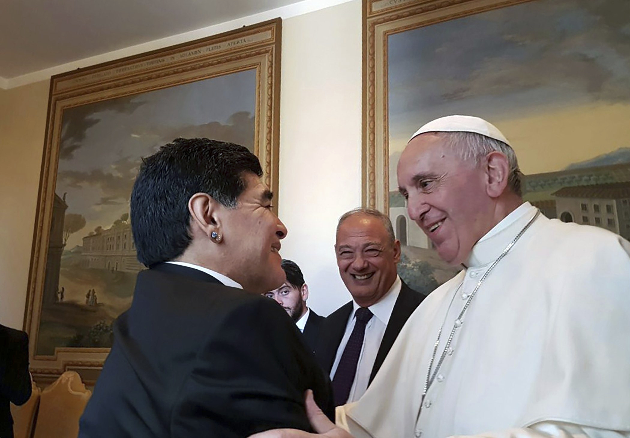 Paavi Franciscus ja Diego Maradona tapasivat ensimmäisen kerran vuonna 2014 Vatikaanissa, hyväntekeväisyysottelun yhteydessä. Silloin Maradona antoi paavi Franciscukselle jalkapallopaidan, jossa luki ”Francisco” ja Maradonan pelinumero 10. Myöhemmin Maradona ja Franciscus tapasivat uudestaan hyväntekeväisyystapahtumien yhteydessä. Maradona kuvasi itseään ”paavin suurimmaksi faniksi”. Hän kertoi, että he keskustelevat monenlaisista asioista, kuten aliravitsemuksesta kärsivistä lapsista, ja ovat yksimielisiä kaikesta.