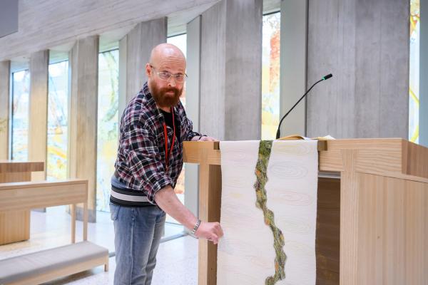 Osatyökykyisten vammaisten työllistymistä seurakuntiin autetaan hankkeella. Olli-Jussi Laaksonen pesi ehtoollispikareja ja valmisteli messuja Korson seurakunnassa.