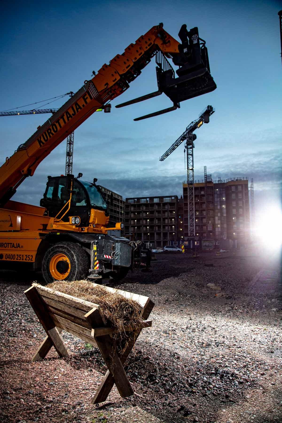 Seimi ja keskeneräinen työmaa kuvattiin Helsingin Jätkäsaaressa vuoden 2018 joulukuussa.