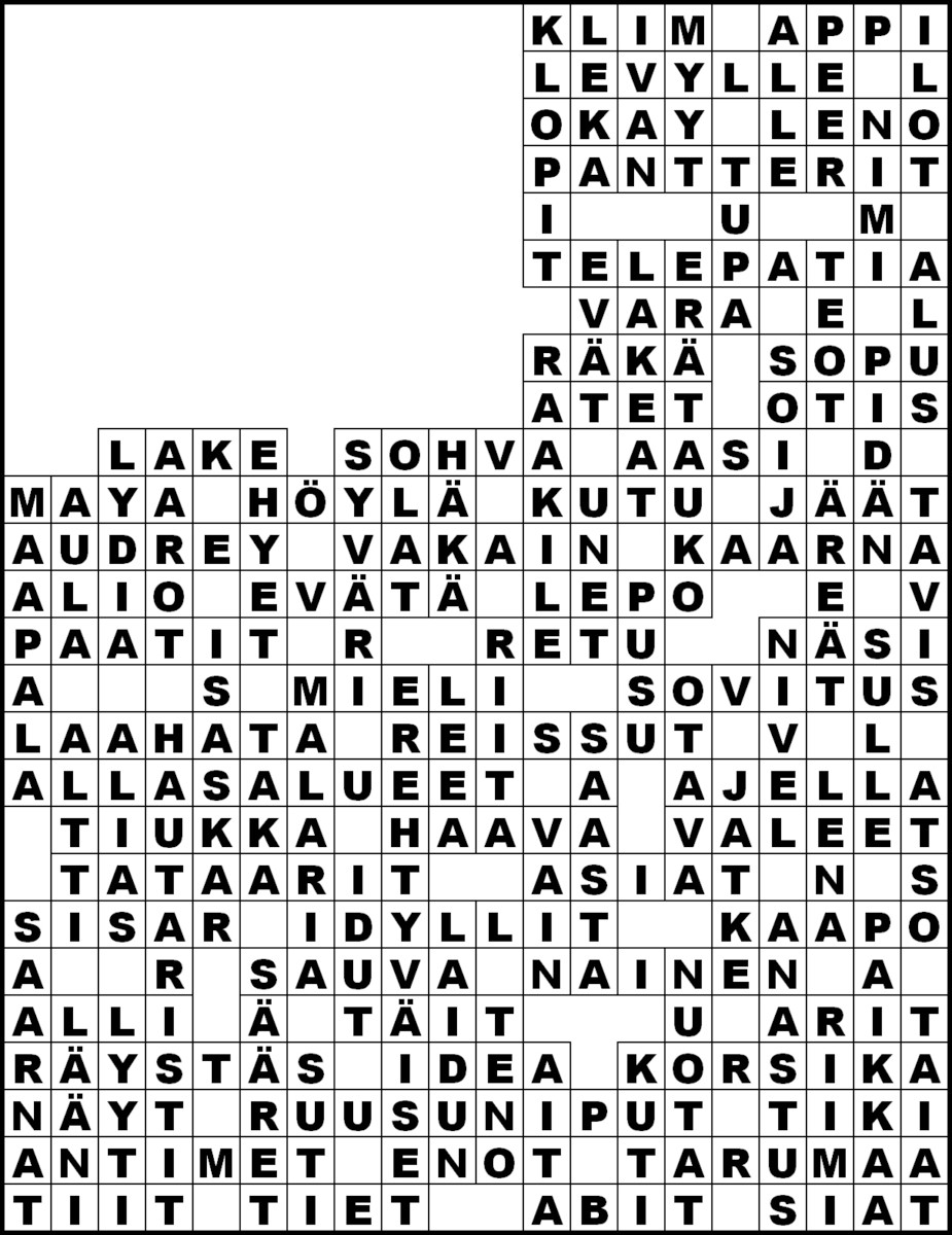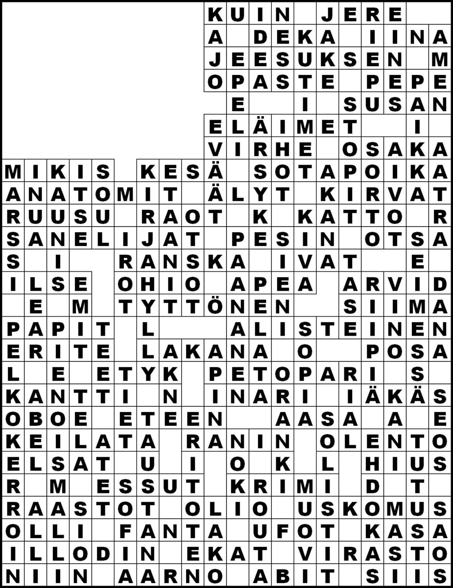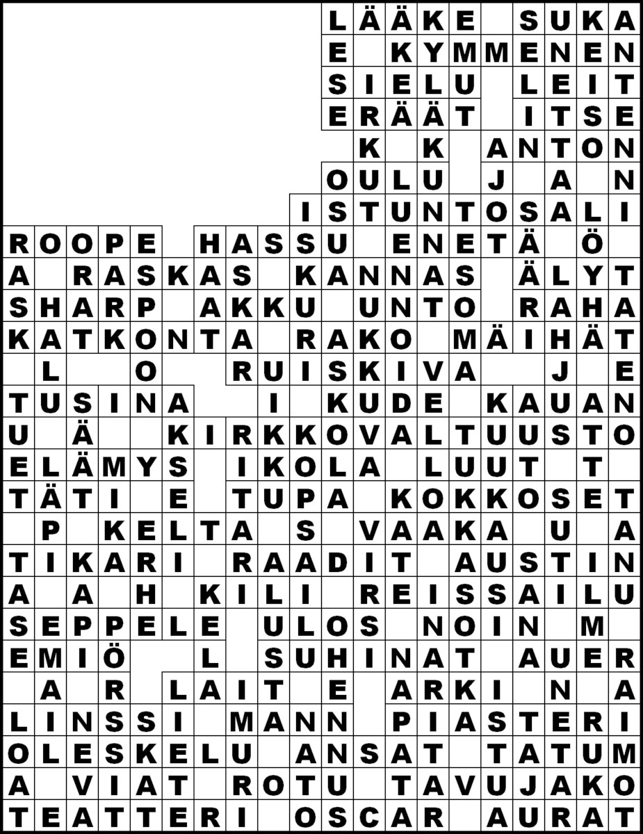 Kirkko ja kaupungin numeron 1 (16.1.2025) ristikon ratkaisu