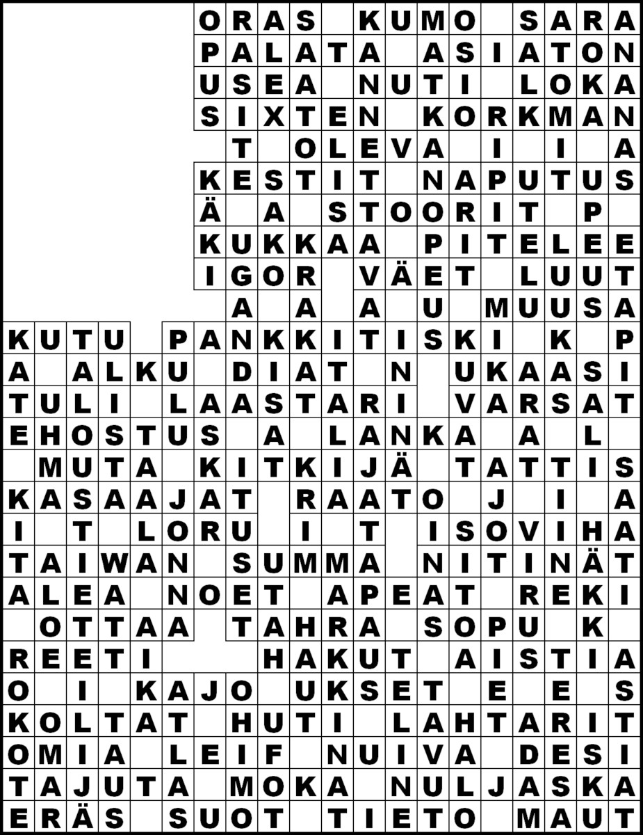 Kirkko ja kaupungin numeron 2 (8.2.2024) ristikon ratkaisu