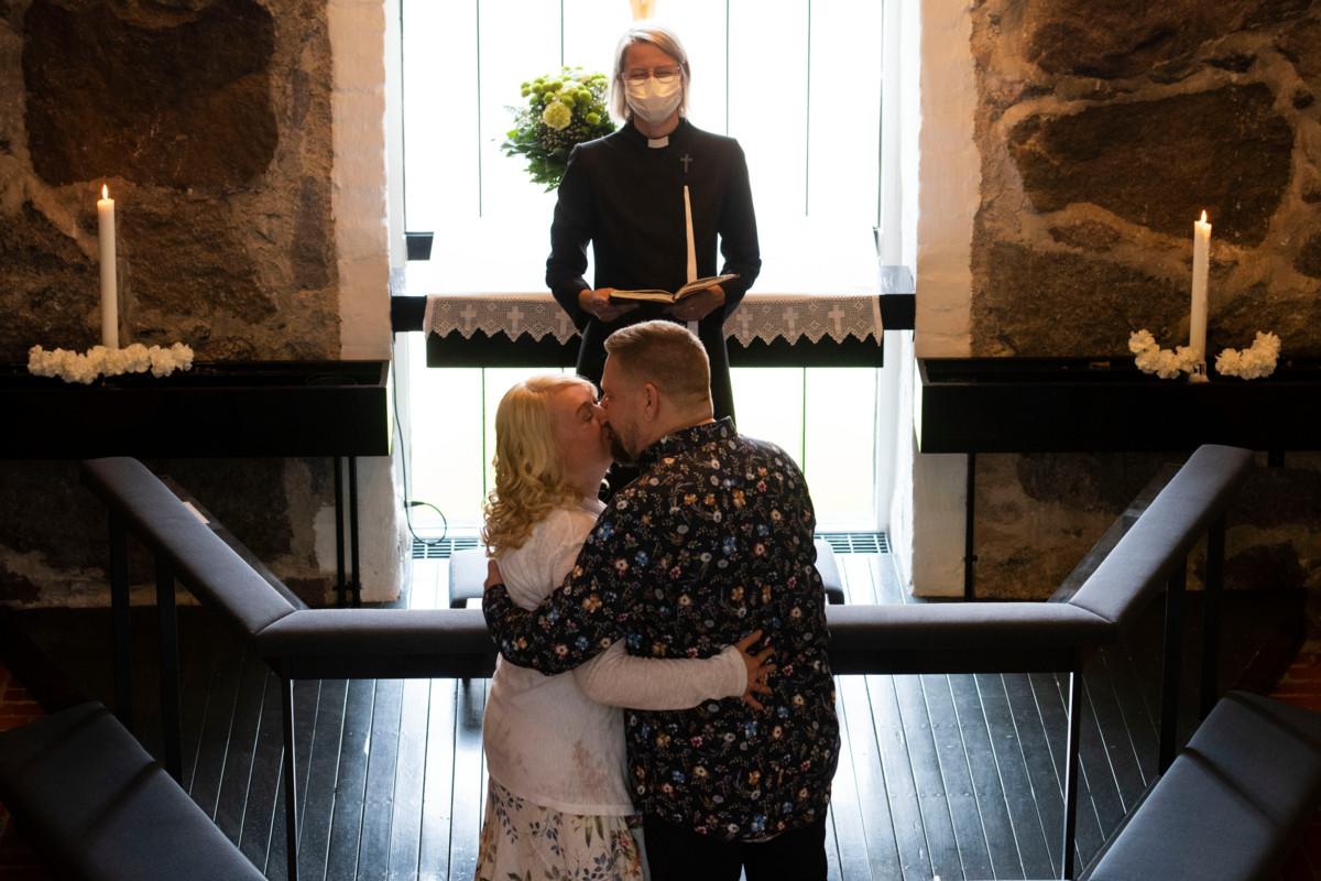 – Oli tärkeää, että saamme avioliitolle Jumalan siunauksen. Ja onhan tämä ympäristönäkin paljon kivempi vaihtoehto kuin maistraatti, Henriksson toteaa.