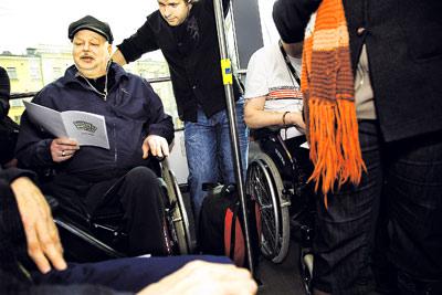 Vanhalla kakkosratikan pysäkillä Ensi linjan päässä tunnelma on malttamaton. Kymmenkunta toisen vuoden lähihoitajaopiskelijaa avustaa Helsingin Diakonissalaitoksen asukkaita tilausraitiovaunun kyytiin. Diakonissalaitoksen avustavan henkilökunnan ja opiskelijoiden toteuttama Spåralla Stadissa -tempaus vie vanhuksia ja päihdekuntoutujia ratikkakierrokselle keväiseen kantakaupunkiin.