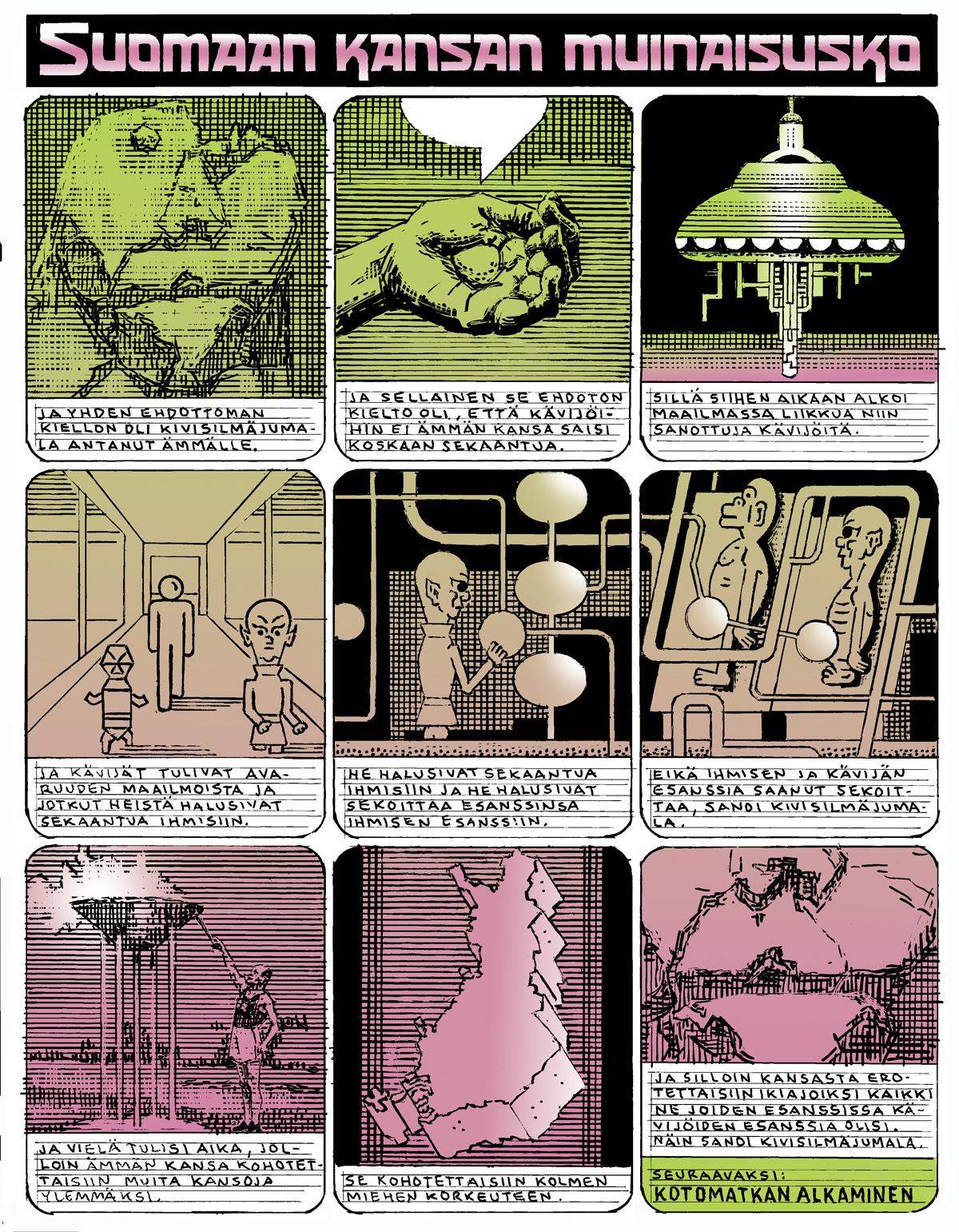 Hyvä elämä Suomaan kansan muinaisusko, osa 16: Kivisilmäjumalan ehdoton kielto 13.09.2018 13:25 Matti Hagelberg Jaa tämä artikkeli: Toimitus suosittelee Suomaan kansan muinaisusko, osa 18: Metsämies saaliillansa Hyvä elämä 11.10.2018 Suomaan kansan muinaisusko, osa 17: Kotomatkan alkaminen Hyvä elämä 27.9.2018 Suomaan kansan muinaisusko, osa 15: Ihmisen liha esi-isien mailla Hyvä elämä 31.8.2018 Suomaan kansan muinaisusko, osa 14: Ihmisen henki Hyvä elämä 15.8.2018 Suomaan kansan muinaisusko, osa 13: Nuotion laittaminen Hyvä elämä 19.7.2018 Matti Hagelberg tekee sarjakuvaa niin kuin kertoisi tarinaa leirinuotiolla Hyvä elämä 17.1.2018 Matti Hagelbergin uutuussarjakuva, osa 1: Suomaalainen saalistaa Hyvä elämä 17.1.2018