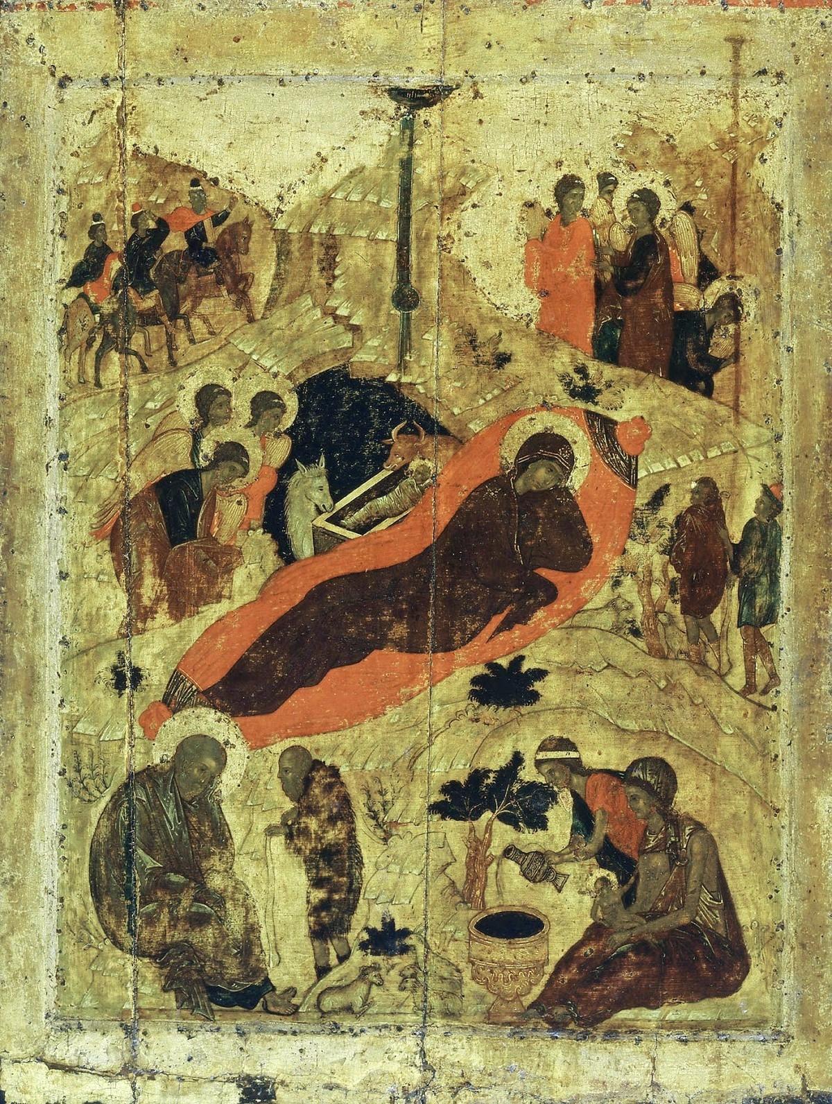 Idän perinteessä Jeesuksen syntymä ei ole mikään hileellä koristeltu kiiltokuva eikä siloteltu seimiasetelma. Jouluikonissa kertomuksen henkilöt ovat hajallaan, omissa nurkissaan kuin suomalaisessa olohuoneessa. Harras madonna ei sylittele pienokaistaan eikä ylpeä isä kumarru huolehtivasti perheensä puoleen. Lapsen arkkumainen vuode muistuttaa ennemmin kuolemasta kuin elämästä, ja lapsi makaa siinä kuin kapaloitu muumio.