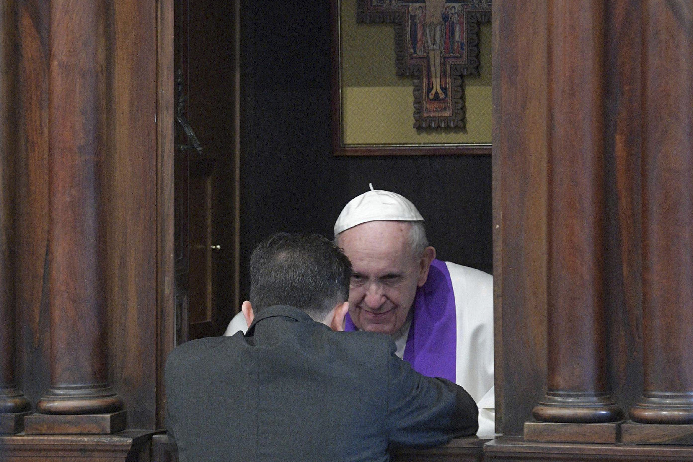 Paavi Franciscus kuunteli katolisen papin ripittäytymistä vuonna 2017.