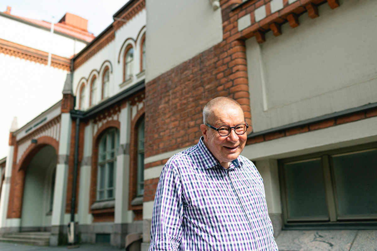 – Olen födannu, eli syntynyt, tässä talossa. Ensimmäiset ikävuoteni aina 13-vuotiaaseen asti rajoittuivat näille kulmille. Kodin vieressä oli saksalainen lastentarha ja saksalainen koulu, joita kävin seitsemän vuotta. Elämänpiiri oli metreissä mitattuna tosi vähän. Olin tyypillinen asfalttihenkinen poika, jonka leikkialueet olivat kaikki asfaltilla peitettyjä. Muistaakseni pihallakaan ei ollut hiekkalaatikkoa.