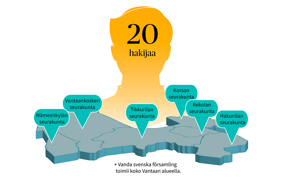Vantaan seurakuntayhtymän johtajaksi hakee 20 henkilöä