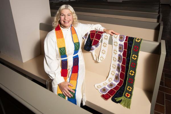 Pappi Jaana Kivekäs hurahti virkattuihin isoäidinneliöihin – ”Oman elämäni itkut ja naurut kulkevat mukana stolan silmukoissa”