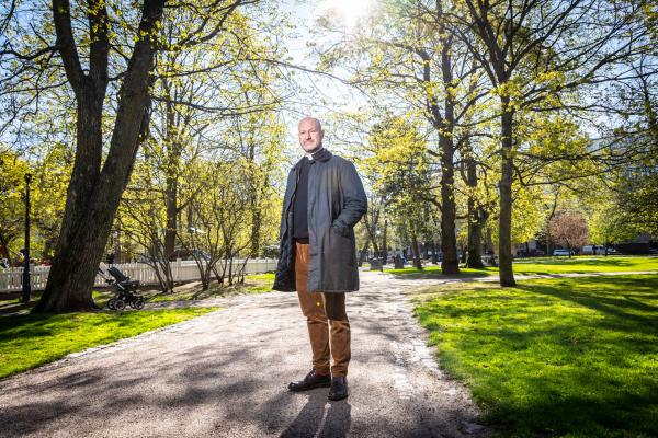 Kirkkoherra Heikki Arikka ja kyberturvallisuuden työelämäprofessori Jarno Limnéll ovat kumpikin työskennelleet sotilasalueella. ”Se vaikuttaa siihen, miten me katsomme maailmaa”, Arikka sanoo.