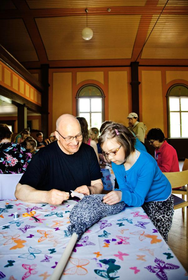 Meilahden seurakunnan isovanhempien ja lastenlasten leirillä askarreltiin Toivo-aasille kavereita. Leiri on Helsingissä ainoa laatuaan, ja se täyttyi hetkessä.