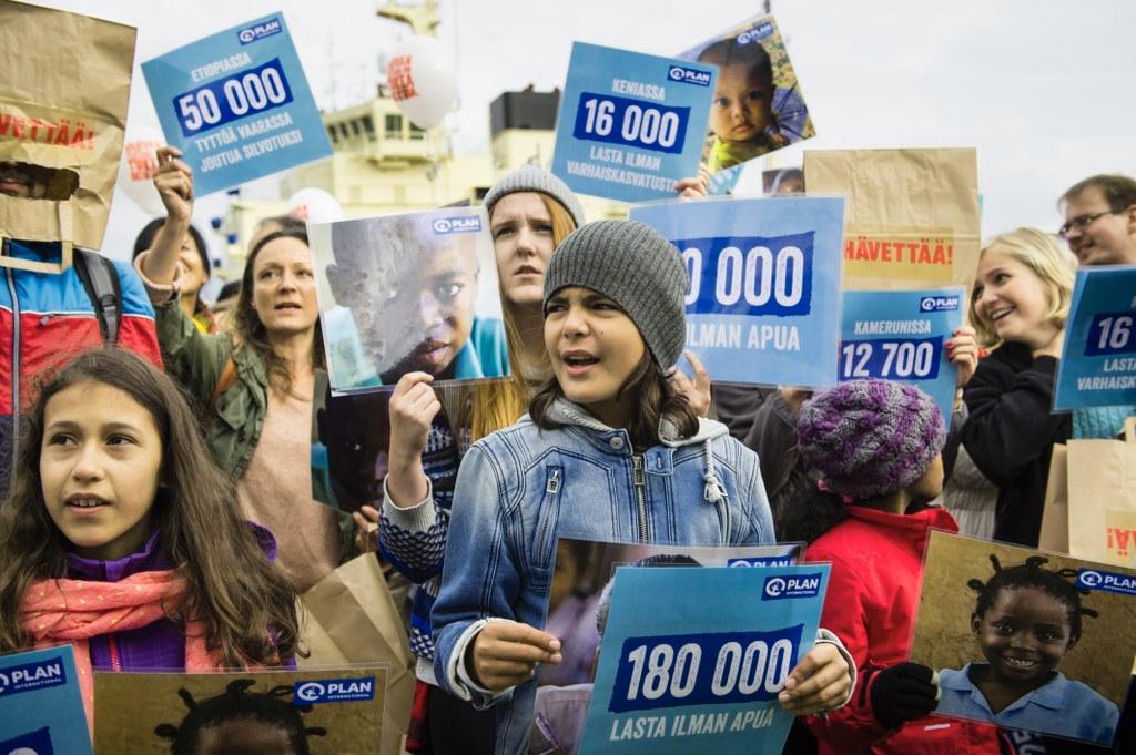 Noin tuhat ihmistä osoitti mieltään tiistaiaamuna kehitysyhteistyön puolesta Helsingissä.