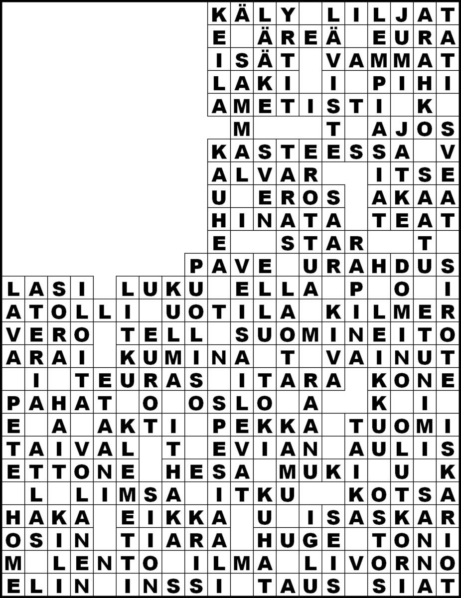 Kirkko ja kaupungin numeron 1 (15.1.2026) ristikon ratkaisu